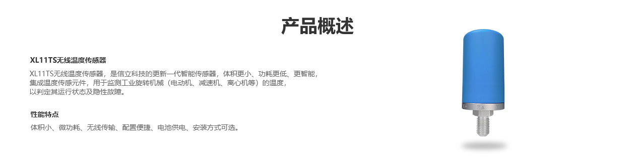 XL11TS無線溫度傳感器,是信立科技的更新一代智能傳感器,體積更小、功耗更低,更智能。集成溫度傳感元件,用于監測工業旋轉機械(電動機,減速機,離心機等)的溫度以判定其運行狀態及隱性故障。