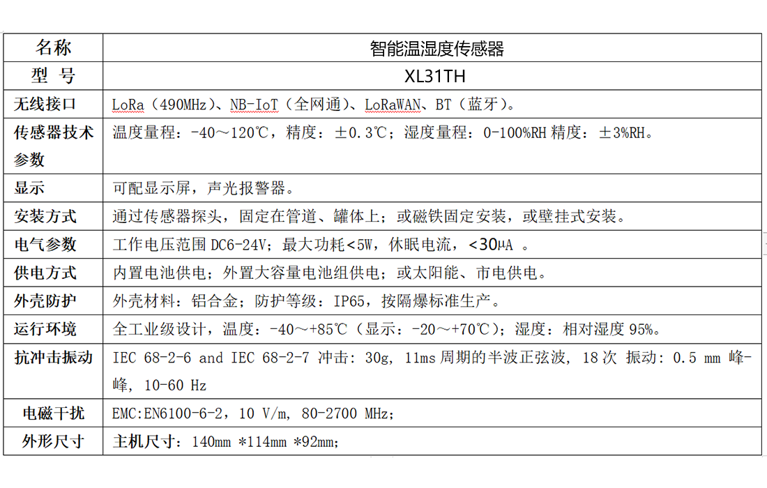 XL31TH智能溫濕度傳感器,集成傳感元件、信息處理、無線通訊、電池供電等于一體。通訊中斷保存數據,通訊恢復重傳數據,超限主動上傳數據,電池能量低上傳報警數據。
