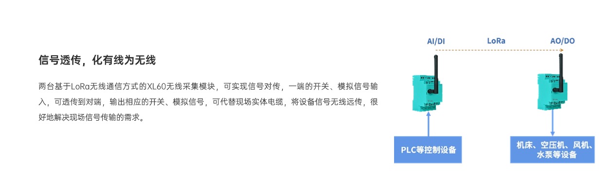 兩臺XL60采集裝置可實現信號對傳,一端的開關、模擬信號輸入,可透傳到另一端,輸出相應的開關、模擬信號,很好地解決了現場信號傳輸的需求。