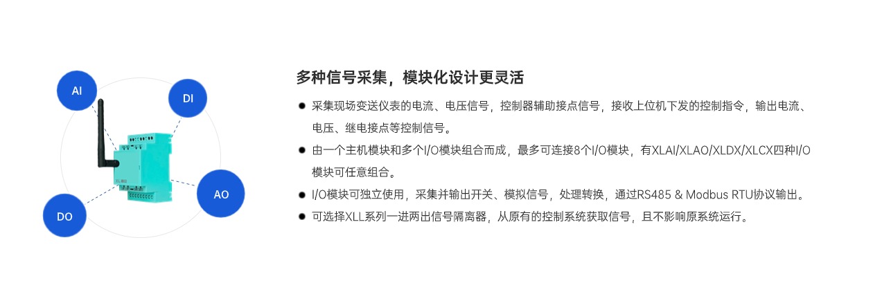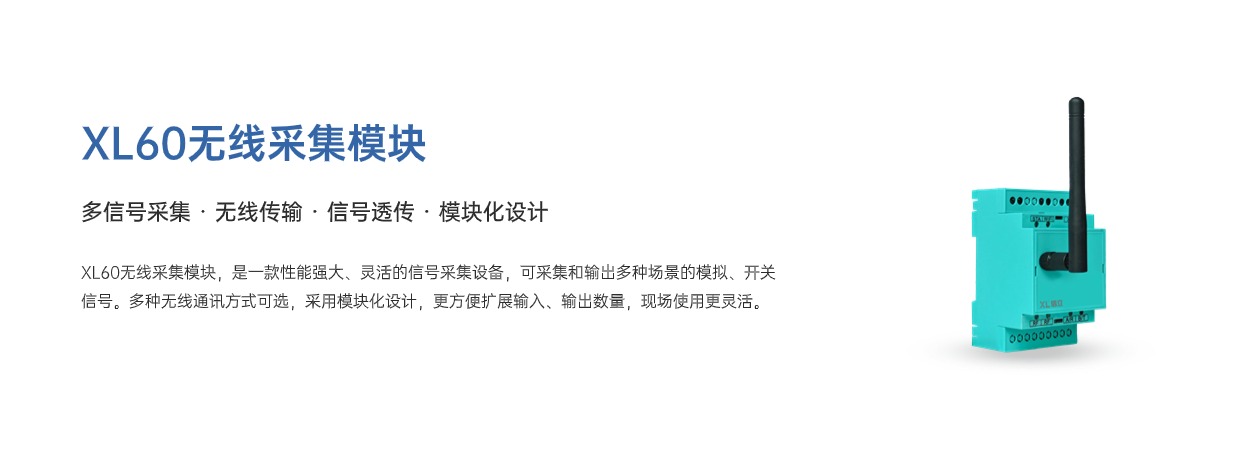 XL60無線采集模塊,采集模擬、開關信號,輸出模擬、開關信號,可選多種無線通訊方式。模塊化設計,更方便擴展輸入、輸出數量。