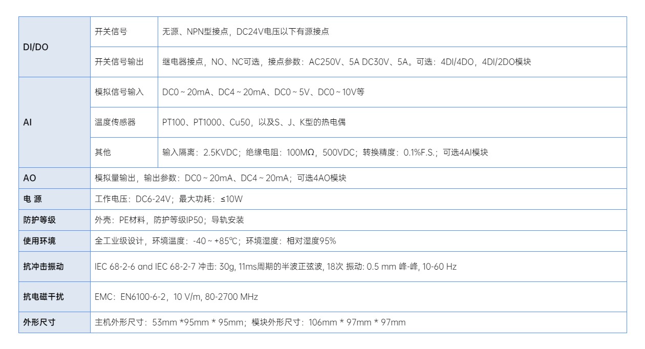 I/O模塊可獨立使用,支持RS485和標準的Modbus RTU通信協議輸出數據。