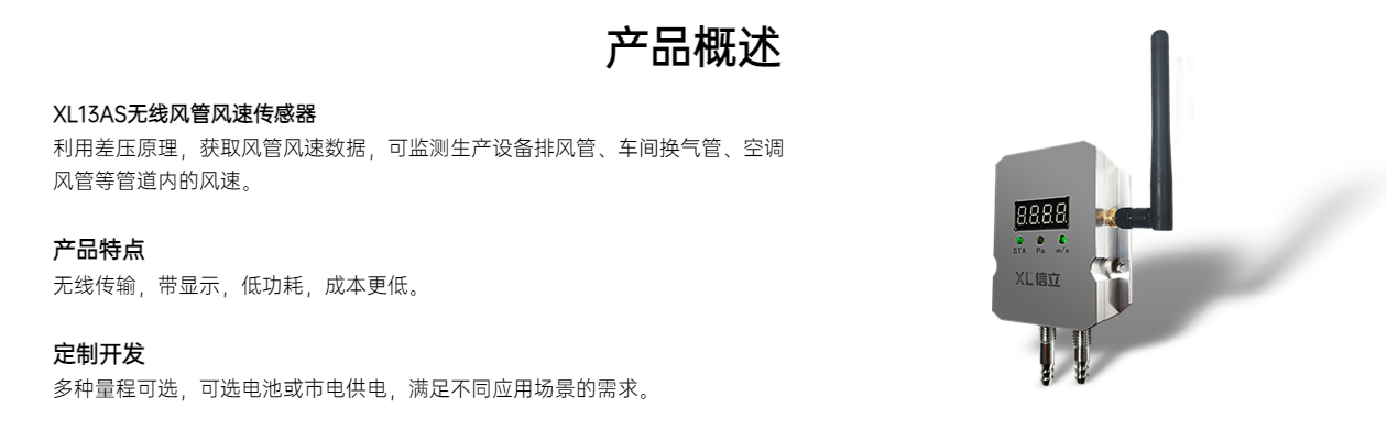XL13AS智能風速傳感器,按低功耗、電池供電標準設計,帶顯示,多種量程可選,體積小,安裝接線簡單、便捷,適應不同的場景的需求。