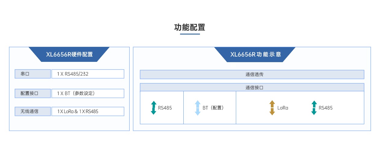 XL6656R多路通信模塊是一款高效靈活的通信轉換設備,可將RS485設備的一路輸出信號,轉為1路LoRa和1路RS485輸出信號,有效滿足了工控設備同時將數據接入兩個Modbus主站的需求,簡單、方便、易用,成本更低,滿足多種場景需求。