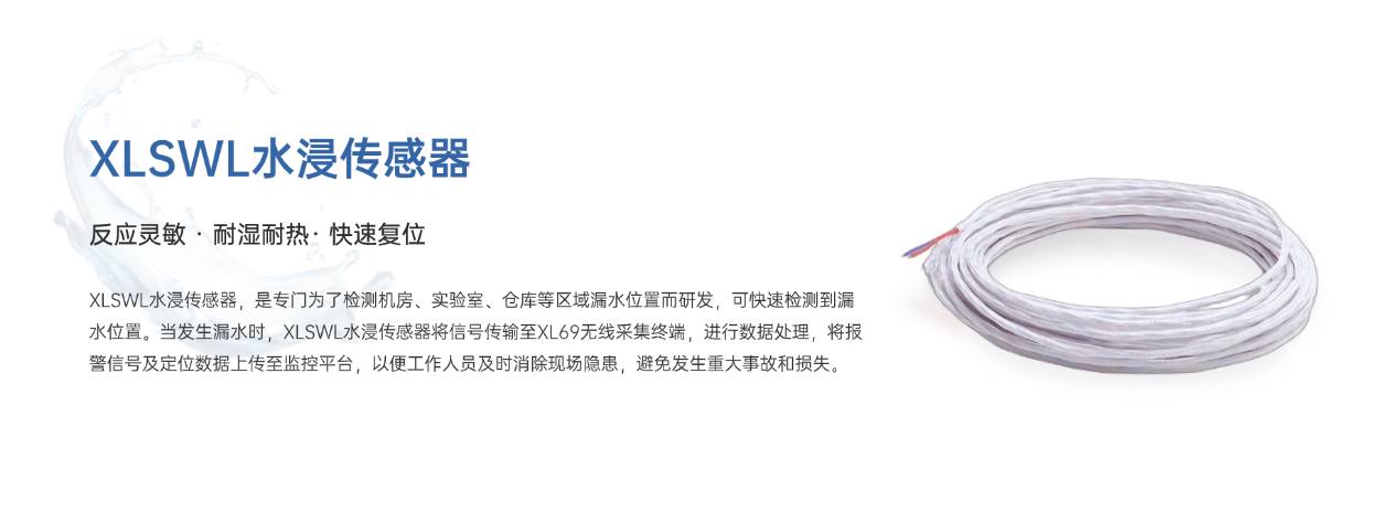 XLSWL水浸傳感器,是專門為了檢測機(jī)房、實(shí)驗(yàn)室、倉庫等區(qū)域漏水位置而研發(fā),可快速檢測到漏水位置。當(dāng)發(fā)生漏水時(shí),XLSWL水浸傳感器將信號(hào)傳輸至XL69無線采集終端,進(jìn)行數(shù)據(jù)處理,將報(bào)警信號(hào)及定位數(shù)據(jù)上傳至監(jiān)控平臺(tái),以便工作人員及時(shí)消除現(xiàn)場隱患,避免發(fā)生重大事故和損失。