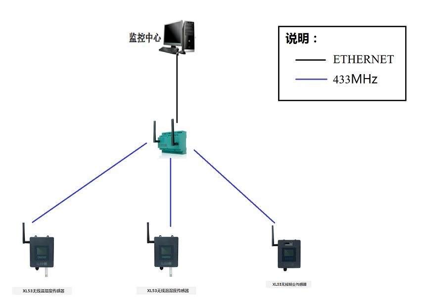 1.監(jiān)測各車間溫濕度數值和粉塵,并將數據無線上傳到網關;