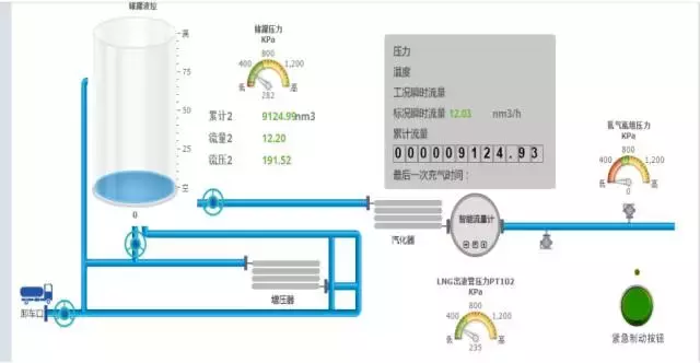 實時動態掌握儲罐運行數據、車輛罐體運行數據、車輛行駛數據、客戶加氣數據、客戶用氣數據等;實現設備遠程無線實時監測、控制及運行異常預警、報警等。