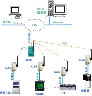 XL80主機,通過LoRa無線接口,從XL66無線讀取設備的運行數據,通信協議轉換處理后,通過Ethernet,轉發數據至MES。