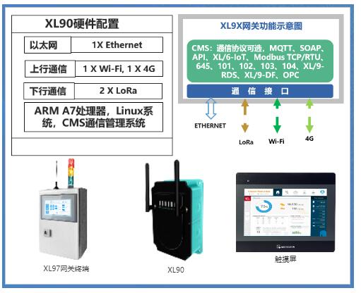 XL90物聯網關:支持兩路LoRa通信,可以分別配置成對上或對下通信;網關支持Ethernet4gWi-Fi通信,可同時向多個系統轉發數據。