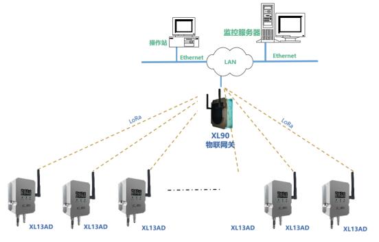 XL13AD無線大氣壓差傳感器采用LoRa無線通信模塊,將采集到的壓差數據無線傳輸至XL90網關XL90網關通過局域網接入監管服務器,或選擇XL97網關終端,實現就地監控。