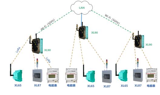 平臺(tái)系統(tǒng)的通信網(wǎng)絡(luò),由XL906物聯(lián)網(wǎng)關(guān)、企業(yè)局域網(wǎng)和監(jiān)控服務(wù)器構(gòu)成,物聯(lián)網(wǎng)關(guān)可同時(shí)將數(shù)據(jù)推送至多個(gè)應(yīng)用軟件平臺(tái)。