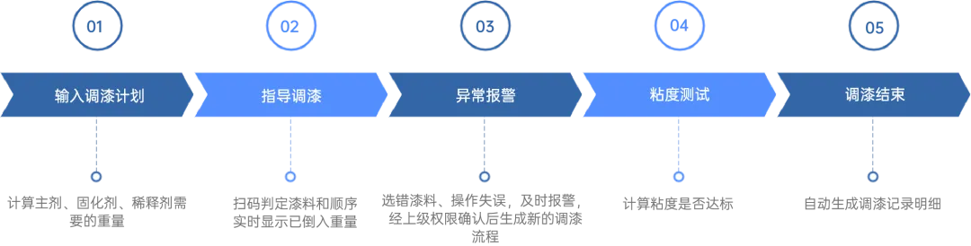 自動匹配調漆工藝,生成各原料配比,指導調漆操作;