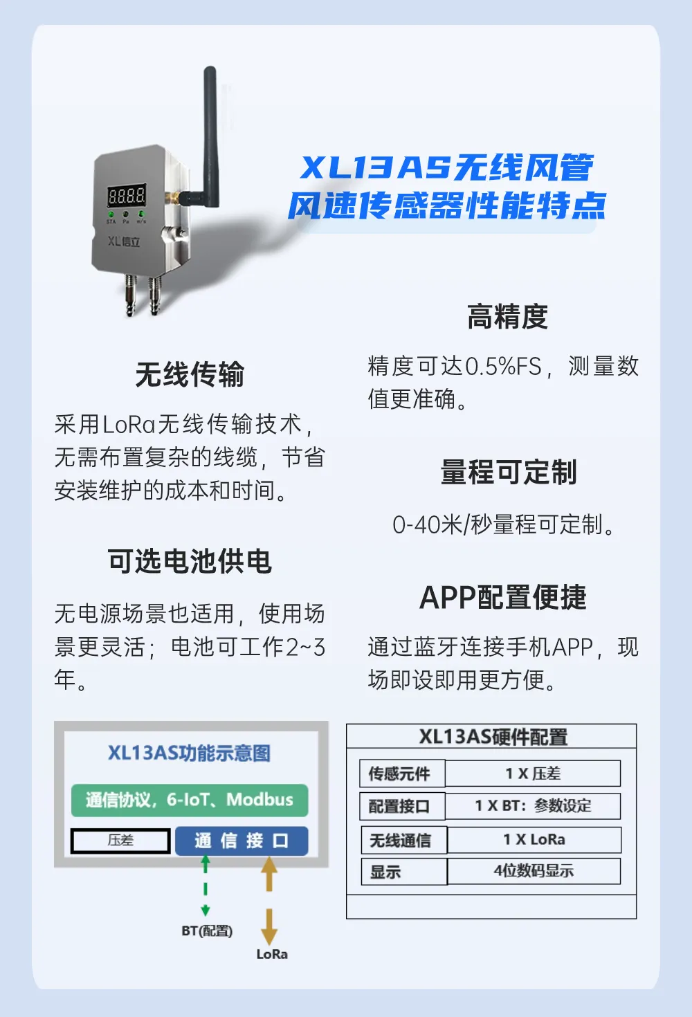 選擇XL13AS無線風管風速傳感器,對當前風速實時監測。帶顯示,現場可直觀了解當前風速。