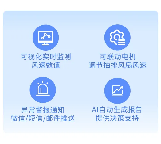 提高管理效率:遠程實時監測,方便管理人員隨時了解當前風速,并可遠程聯動控制電機,提升設備管理的靈活性和效率。