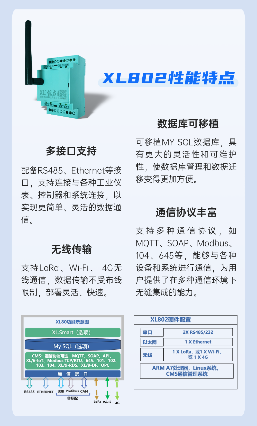 XL802通信主機,可同時將數據推送到現場顯示儀表物聯網關,實現現場就地監控平臺遠程監控