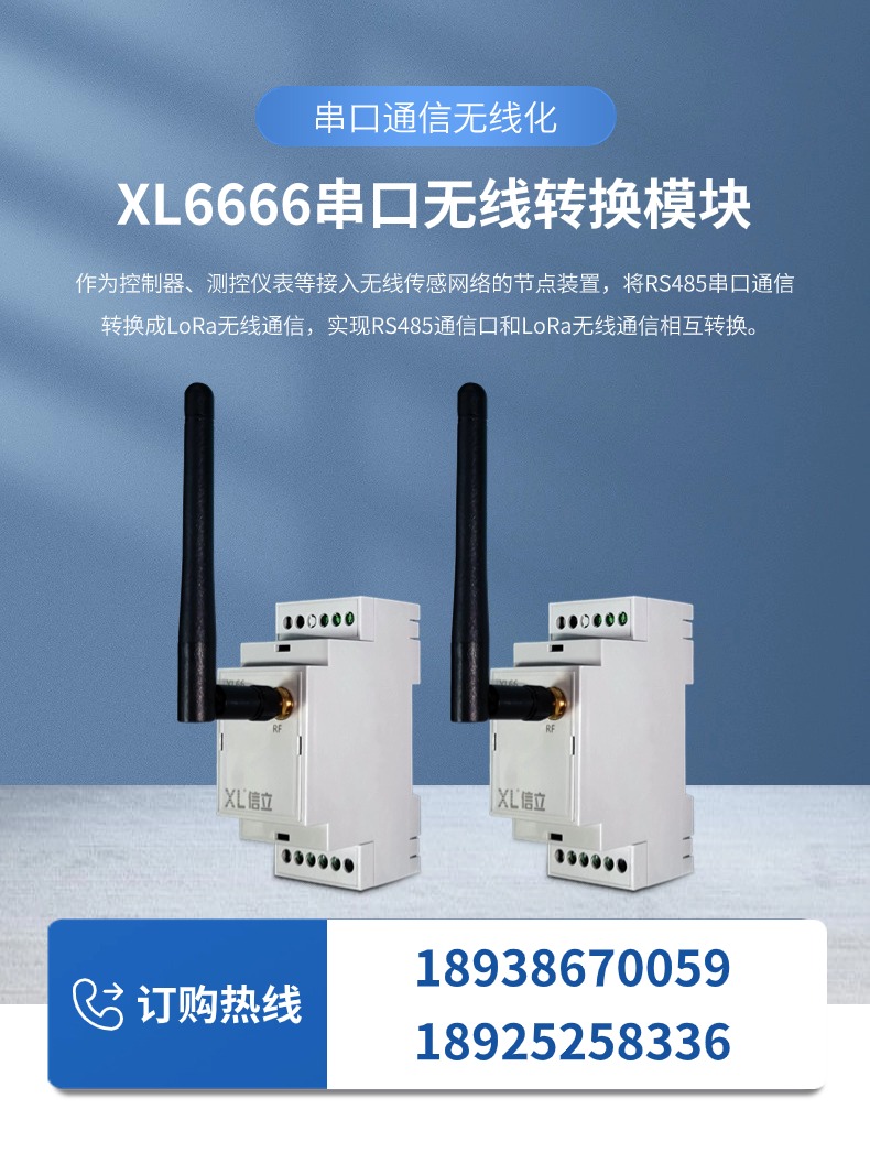 選擇XL6666串口無線轉換模塊,通過RS485通信口讀取流量計數據,并通過 LoRa 無線傳輸至中控室。